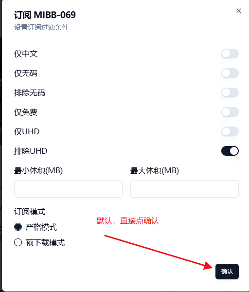 ✔✔步骤5:点订阅后,会出现确认框,不改,默认,直接点确认就会直接下载。