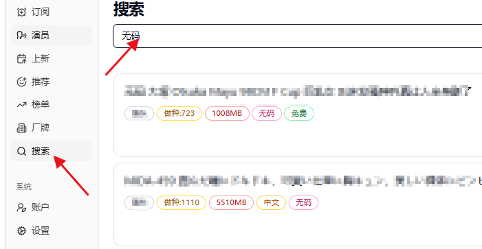 第四,搜索那里,可以搜无码。就会搜出资源站无码的资源出来,点下载即可。