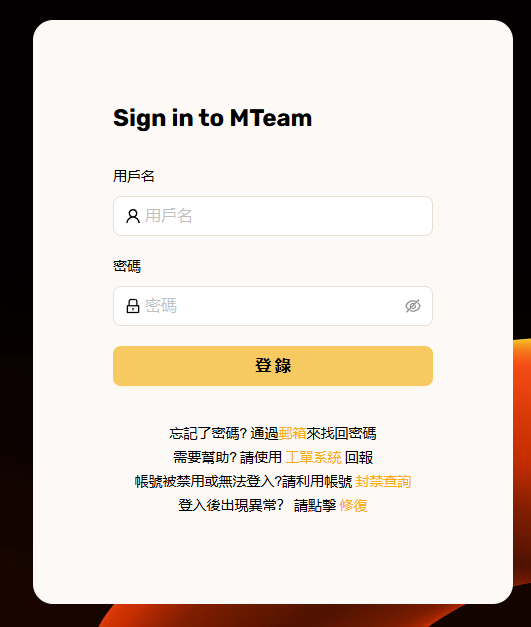 ✔步骤1:在电脑浏览器网址栏输入 https://kp.m-team.cc (每月登陆的也是这个网址),然后输入你之前注册的用户名密码邮箱登陆进去,这样就进到资源站官网首页了,也算登陆一次了。