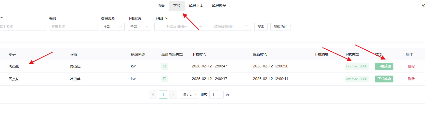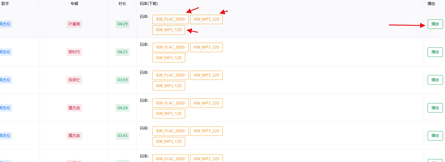 ✔步骤4:单曲搜出歌曲后,可以先播放试听,是自己要的,再下载,点击码率对应的格式,就能直接下载到nas的music文件夹内,会同时内置歌词跟封面。